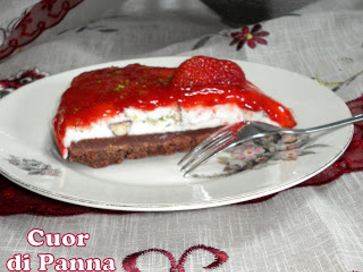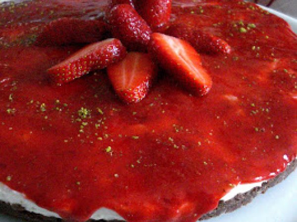 Cheesecake con salsa alle fragole e pistacchi... vota adesso PrecedenteProssimo Dessertfacile1 h 10 m Invia questa ricetta ad un amico Stampa la ricetta Contatta l'autore della Ricetta Pubblica la foto di questa ricetta Ingredienti 4 Per la base: 400 g di biscotti secchi al cioccolato 200 g di burro Per la farcia: 250 g di ricotta 250 g di mascarpone 200 g di zucchero 1 bicchierino di liquore alla crema di mandarini 1 bustina di vanillina 2 fogli di gelatina Extra per la farcia: pistaccio di Bronte tritato biscottini al cioccolato tipo togo Per la salsa alle fragole: 200 g di fragole al netto degli scarti 70 g di zucchero succo di 1/2 limone Extra per la decorazione: fragole pistacchio di Bronte tritato