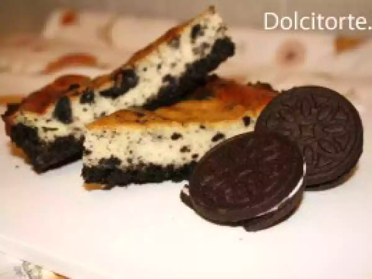 Cheesecake oreo Dessertfacile45 min Invia questa ricetta ad un amico Stampa la ricetta Contatta l'autore della Ricetta Pubblica la foto di questa ricetta Ingredienti 4 Per la base 30 g di burro fuso 25 Oreo tritati finemente Per il ripieno 680 g di Philadelpia 220 g di zucchero 4 uova grandi 30 g di farina 200 g di panna acida 2 cucchiaini di estratto di vaniglia 10 Oreo tritati grossolanamente
