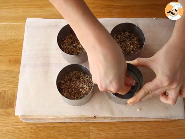 Mettete questo composto sul fono di ogni anello e pressate bene (sarà la base della vostra cheesecake vegana)