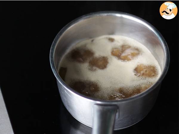 Fate sciogliere il burro in un pentolino, poi aggiungete la birra Guinnes. Portate ad ebollizione e lasciate evaporare l'alcool. Fate raffreddare.