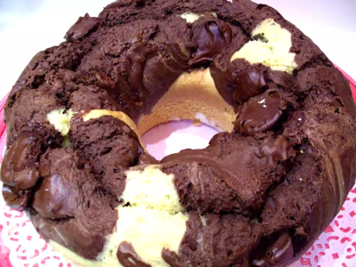 Ciambella marmorizzata vota adesso PrecedenteProssimo Dessertfacile2 h 30 m Invia questa ricetta ad un amico Stampa la ricetta Contatta l'autore della Ricetta Pubblica la foto di questa ricetta Ingredienti 4 500 g di farina 00 4 uova 200 g di zucchero 1 bichiere di olio di semi 1 bicchiere di acqua o latte 1 bustina di lievito 1 bustina di vanilina 3 cucchiai di cacao amaro in polvere 6 cucchiaini di nutella
