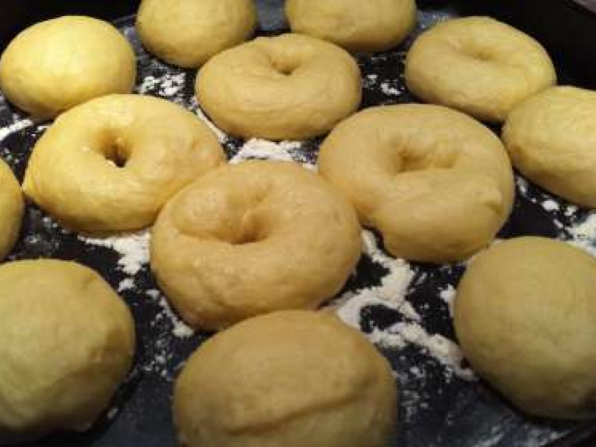 - Bollite, pelate e schiacciate le patate con lo schiaccia patate. Fare sciogliere il lievito nel latte tiepido. Impastare tutto insieme, disponendo la farina a fontana. Formare delle ciambelline piccole e delle bombette (perchè poi lievitando s'ingigantiscono) e disporle sulla teglia infarinata abbondantemente in modo da non farle appiccicare.Lasciare lievitare 2 ore nel forno con la luce di cortesia.