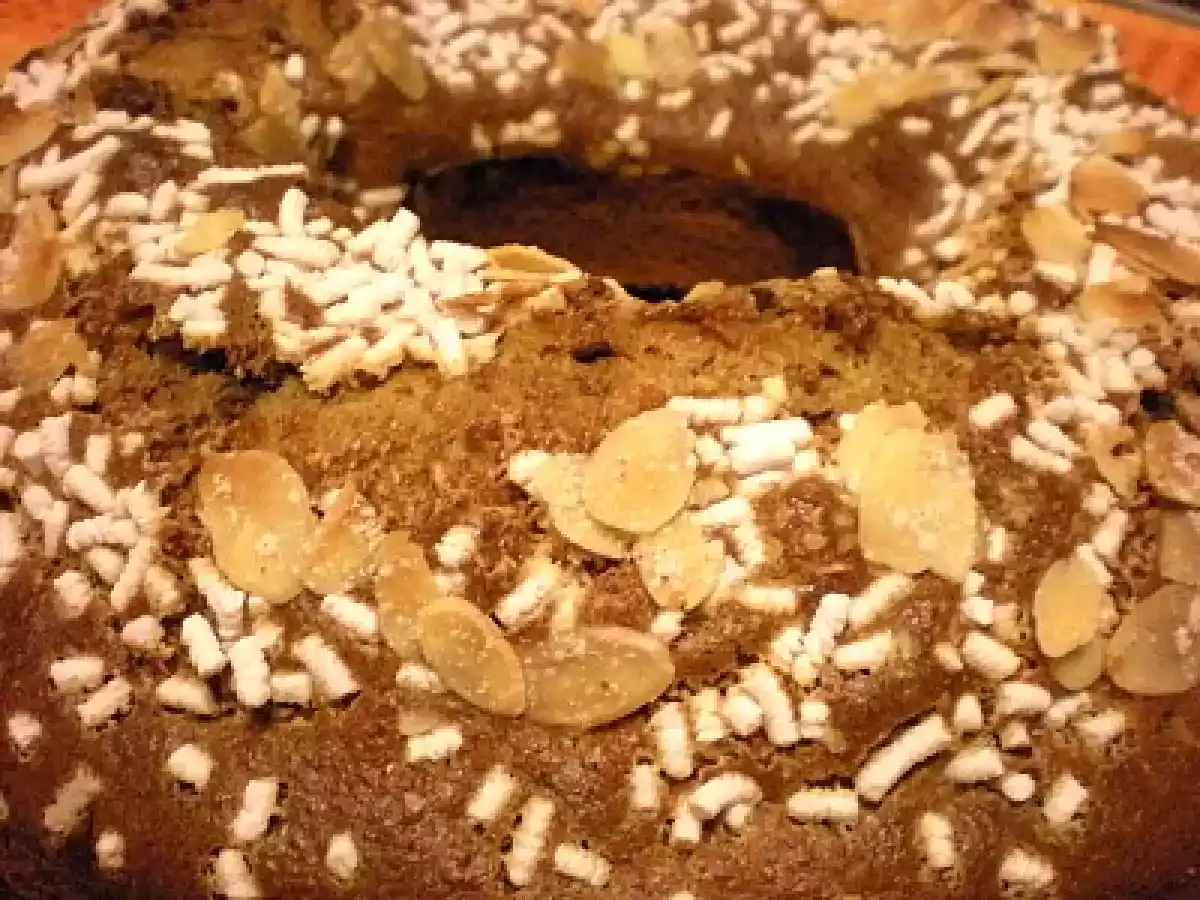 Ciambellone con mandorle e zucchero vota adesso PrecedenteProssimo Dessertfacile1 h 30 m Invia questa ricetta ad un amico Stampa la ricetta Contatta l'autore della Ricetta Pubblica la foto di questa ricetta Ingredienti 3 3 uova 100 g di burro 200 g di zucchero 350 g di farina1 bicchiere di latte 1 arancia grattugiata 1 limone grattugiato 100 g di arancia candita 1 bustina di lievito 1/2 fialetta di aroma di mandorle 1 bicchierino di liquore alle mandorle Per decorare: 100 g di granella di zucchero 100 g di mandorle sbucciate