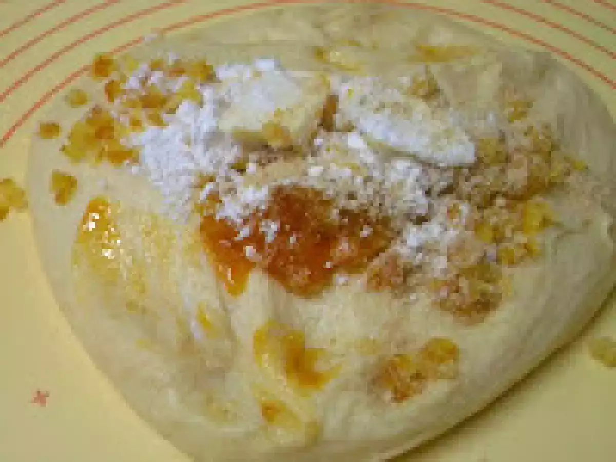 Qui, dopo un'ora e dopo 4 ore, è più che raddoppiata. - A questo punto, coperto con la glassa, usando una tasca con la bocchetta liscia, distribuendola in particolar modo sui bordi, guarnito con le mandorle intere e ricoperto di granella di zucchero ed una spolverata di zucchero a velo.