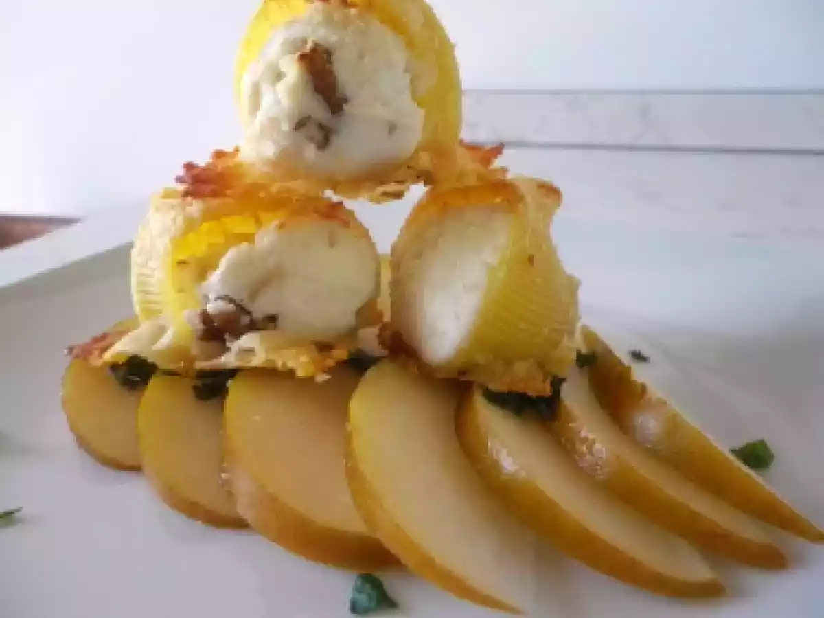 Conchiglie con ricotta, noci e pere gratinate al pecorino PrecedenteProssimo Dessertfacile50 min Invia questa ricetta ad un amico Stampa la ricetta Contatta l'autore della Ricetta Pubblica la foto di questa ricetta Ingredienti 2 150 g di conchiglioni 75 g di ricotta magra 15 g di gherigli di noci tritate meta' pera kaiser ridotta a cubetti piccoli pecorino grattugiato per la gratinatura sale e pepe q.b.