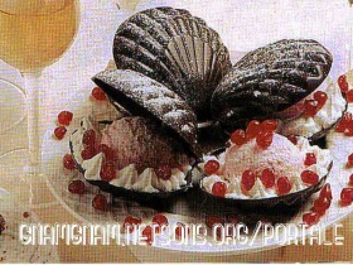 Conchiglie di cioccolato con gelato alla fragola vota adesso Dessertfacile15 h 25 m Invia questa ricetta ad un amico Stampa la ricetta Contatta l'autore della Ricetta Pubblica la foto di questa ricetta Ingredienti 8 PER IL GELATO : 800 g di fragole 400 g di yogurt intero al naturale 240 g di zucchero scorza grattugiata di 1 limone 2 cucchiai di succo di limone 8 cucchiai di latte PER LE CONCHIGLIE DI CIOCCOLATO : 100 g di albumi 100 g di zucchero a velo 100 g di burro ammorbidito 80 g di farina 30 g di cacao PER SERVIRE : 1 melagrana panna montata zucchero a velo