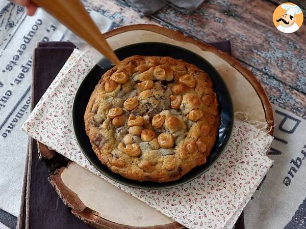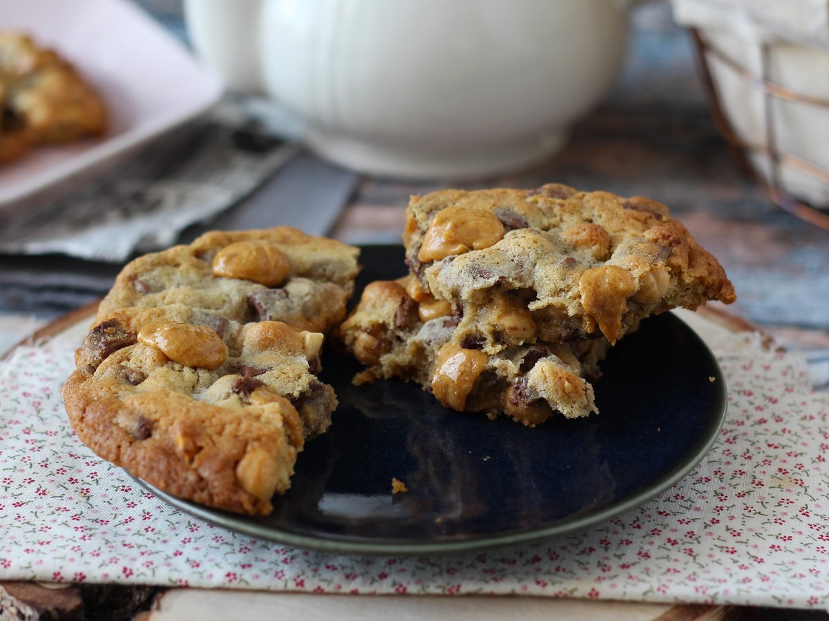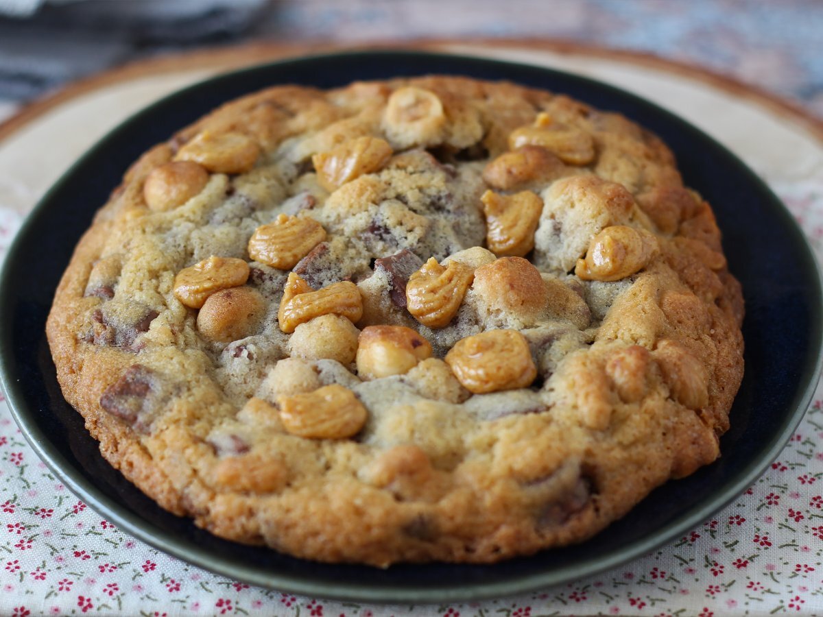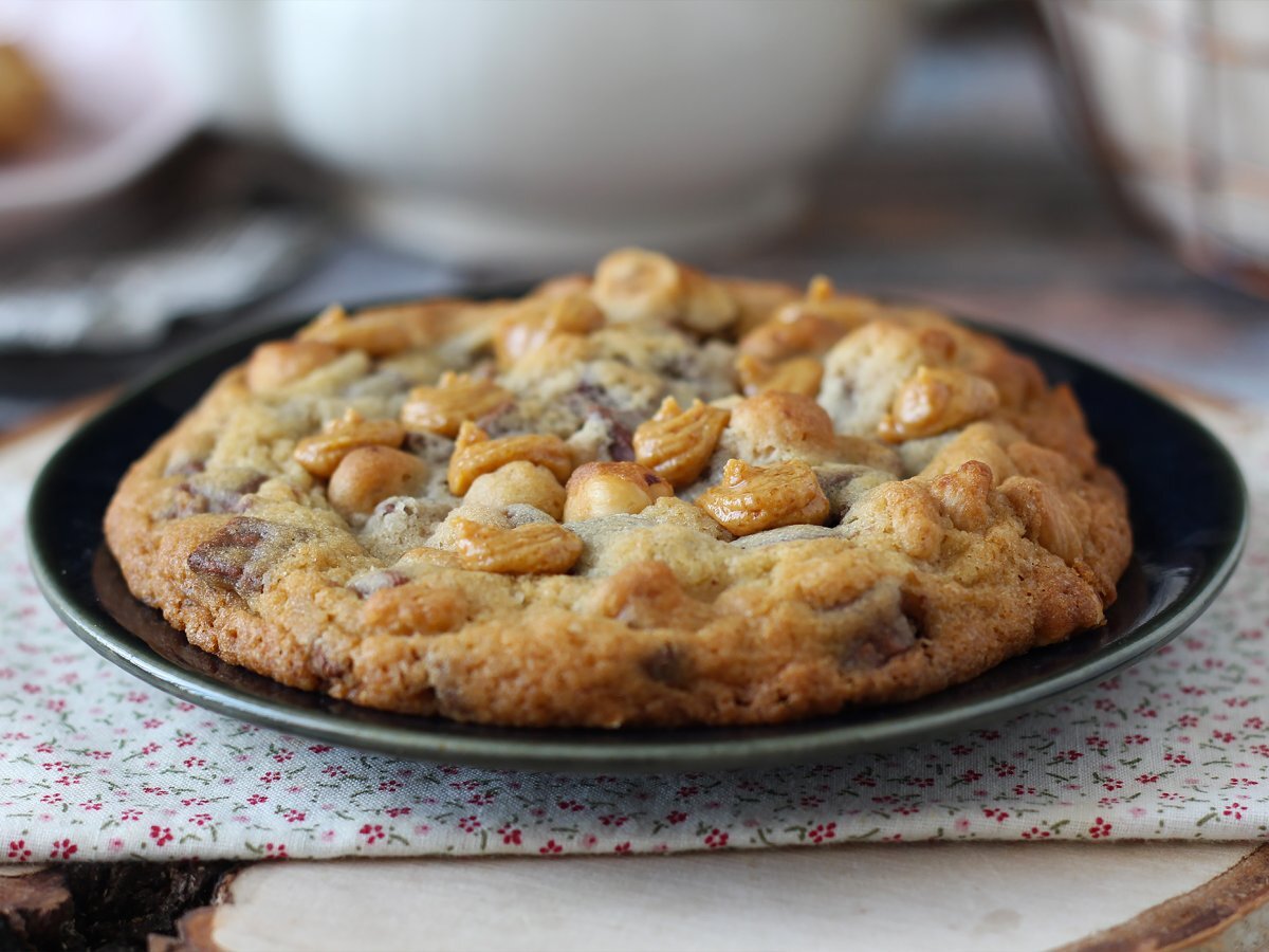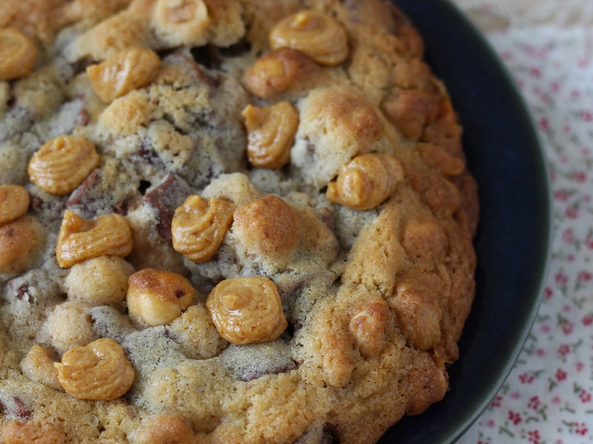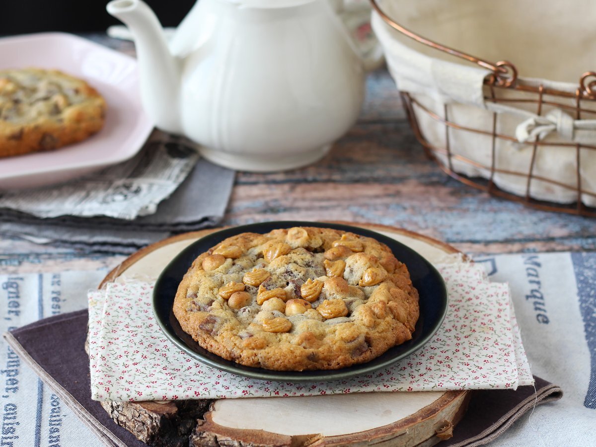 Sul nostro sito trovate tantissime ricette facili per preparare cookies a casa. Avete sicuramente già provato i cookies al cioccolato, mandorle e arachidi ed i golosissimi cookies vegani e senza glutine ma ecco una nuova proposta per voi: il giant cookie. Taglia XXL e golosi da morire, la ricetta di questi tradizionali biscotti americani è da tenere sempre a portata di mano! Abbiamo preparato i cookies giganti utilizzando cioccolato al latte, nocciole tostate ed un super pralinato di arachidi fatto in casa. La consistenza è perfetta (morbidi all'interno e croccanti in superficie), non vi resta che seguire la ricetta spiegata passo a passo se volete proporli a colazione o a merenda.