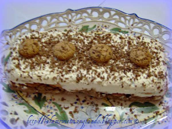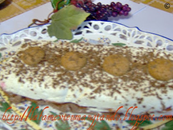 - Montate la panna rimasta e aggiungetela piano piano. Mescolate bene il tutto e dividete a metà, una parte la lasciate bianca e all'altra aggiungete il cacao, mettete tutto in frigo.