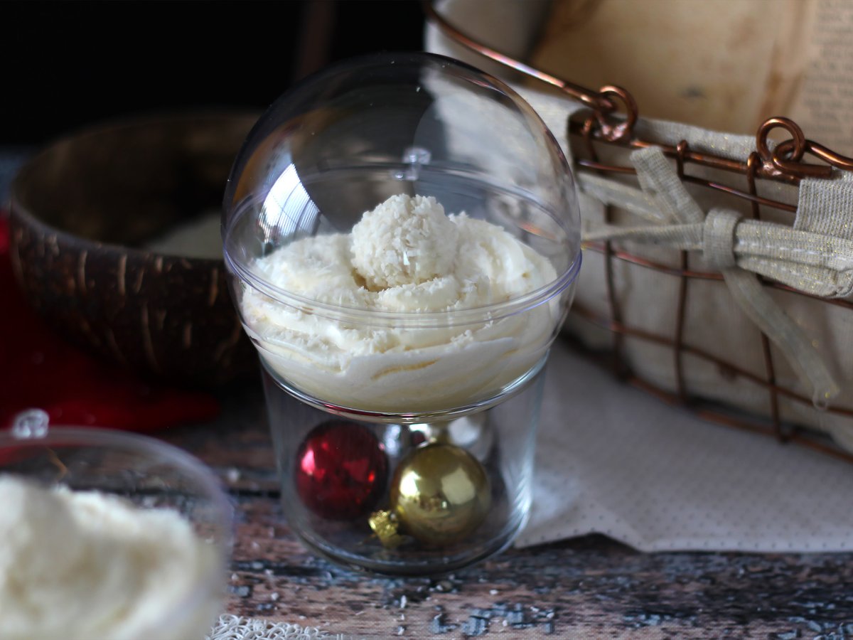 Crema raffaello, il dolce al cucchiaio da favola in una pallina di natale