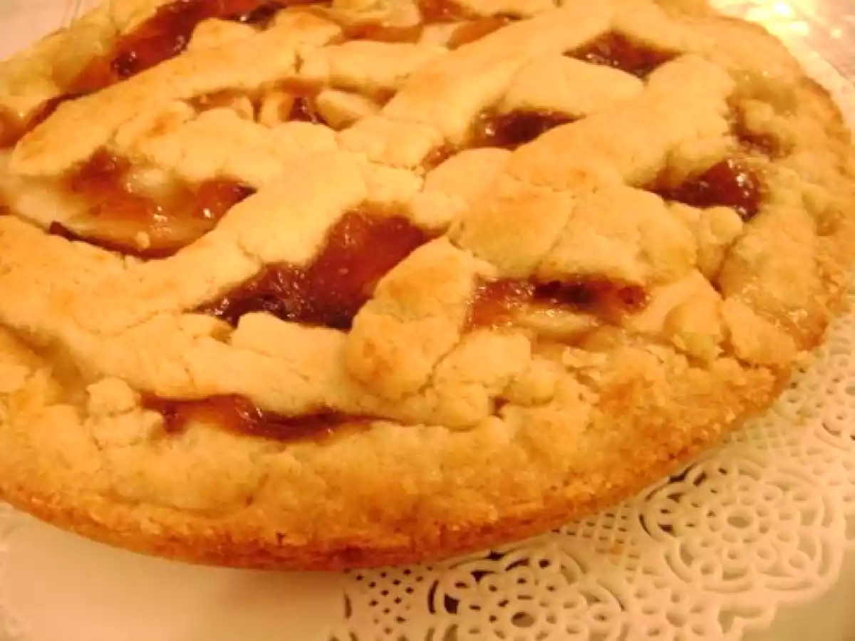 Crostata alle pere, mele e marmellata di amarena (all'acqua frizzante) vota adesso Dessertfacile1 h 10 m Invia questa ricetta ad un amico Stampa la ricetta Contatta l'autore della Ricetta Pubblica la foto di questa ricetta Ingredienti 4 200 g di farina 00 100 g di zucchero di canna + 1 cucchiaio 50 g di burro di soia o margarina vegetale 50 g di acqua frizzante 1 pizzico di sale scorza di limone grattuggiato succo di mezzo limone 8 g di lievito per dolci 1 mela 1 pera marmellata