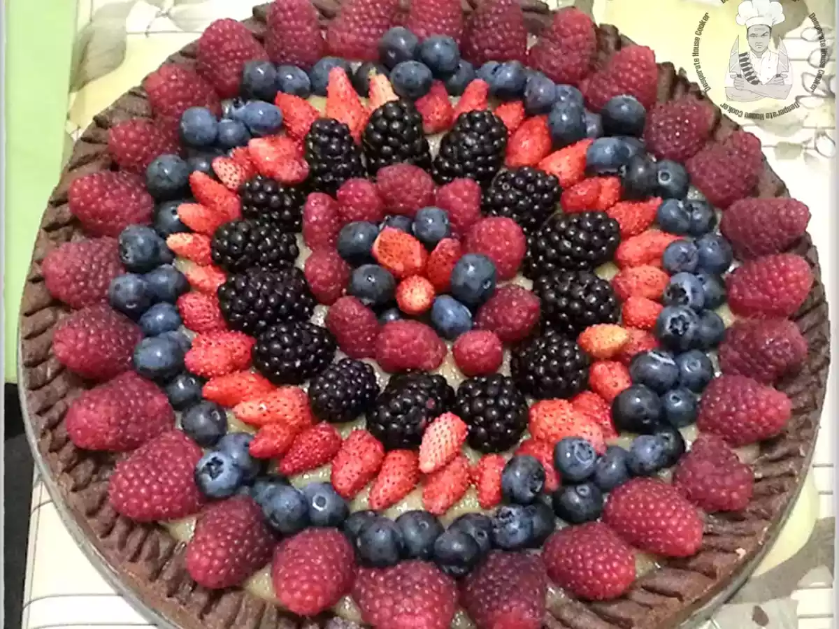 Oggi vi ripropongo con estremo piacere una ricetta di un anno fa, di cui vado molto orgoglioso, la crostata che ho preparato per il compleanno di mia moglie e di due nostre carissime amiche. Una deliziosa frolla al cacao con il rhum, crema frangipane e una valanga di frutti di bosco. Come si può non amare questa torta!!!!!