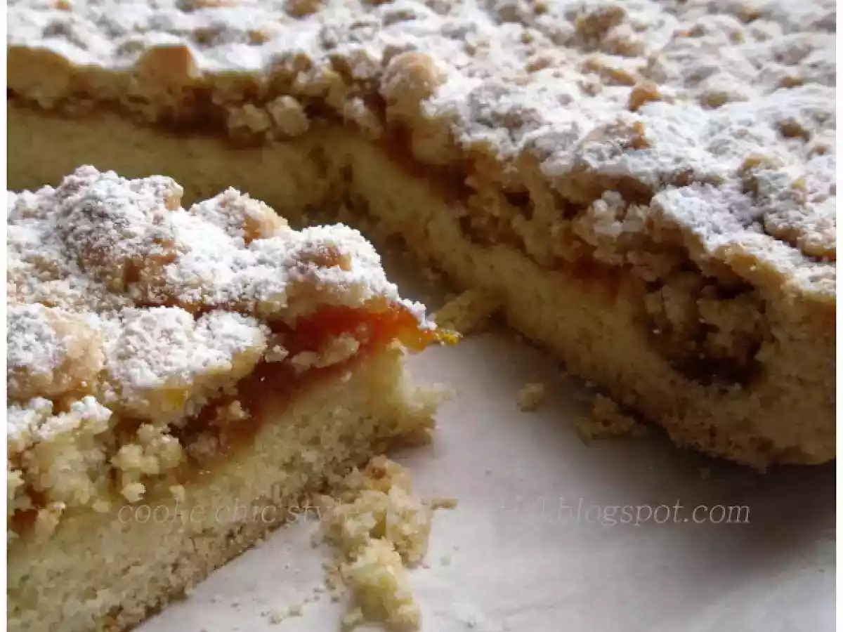 Crostata con confettura homemade di pesche e crumble...in uno sprint Dessertfacile1 h 5 m966 Kcal Invia questa ricetta ad un amico Stampa la ricetta Contatta l'autore della Ricetta Pubblica la foto di questa ricetta Ingredienti 3 300 g di farina 120 g di zucchero un cucchiaino e mezzo di lievito per dolci 150 g di burro un uovo intero un tuorlo zucchero vanigliato per decorare un vasetto di confettura di pesche un pizzico di sale Costo stimato: 1.96Euros€ (0.65€/Porzioni)
