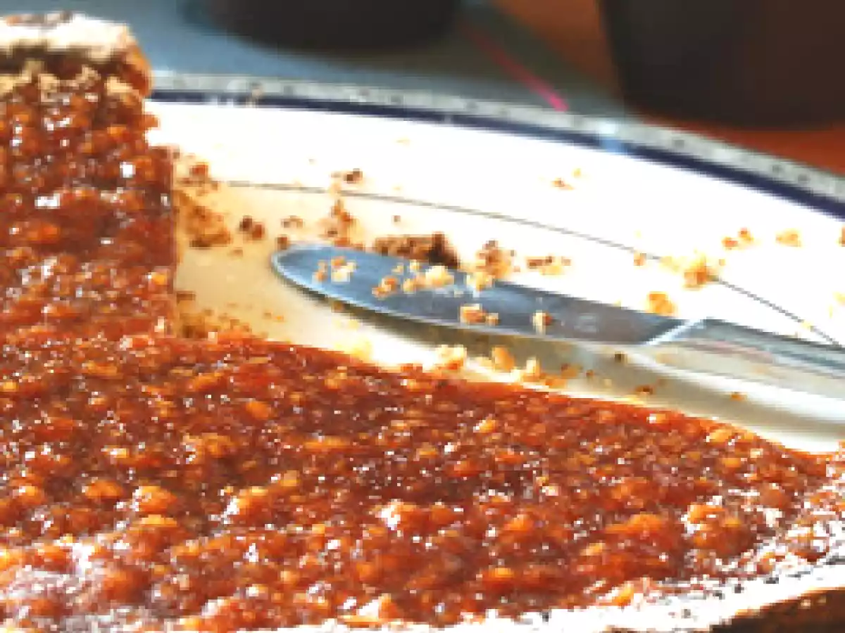Crostata con [la confettura di] melagrana e noci PrecedenteProssimo Dessertfacile50 min1027 Kcal Invia questa ricetta ad un amico Stampa la ricetta Contatta l'autore della Ricetta Pubblica la foto di questa ricetta Ingredienti 4 Per la pasta frolla: 200 g di farina 00 40 g di fecola di patate 160 g di burro 80 g di zucchero a velo 2 tuorli d'uovo 1 pizzico di sale Per la confettura di melagrana: 500 g di chicchi di melagrana 250 g di zucchero 50 g di gherigli di noce 1 arancia non trattata