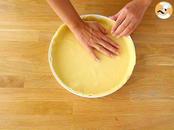 Posizionate la pasta frolla nello stampo. Poi con una forchetta bucherellate la base