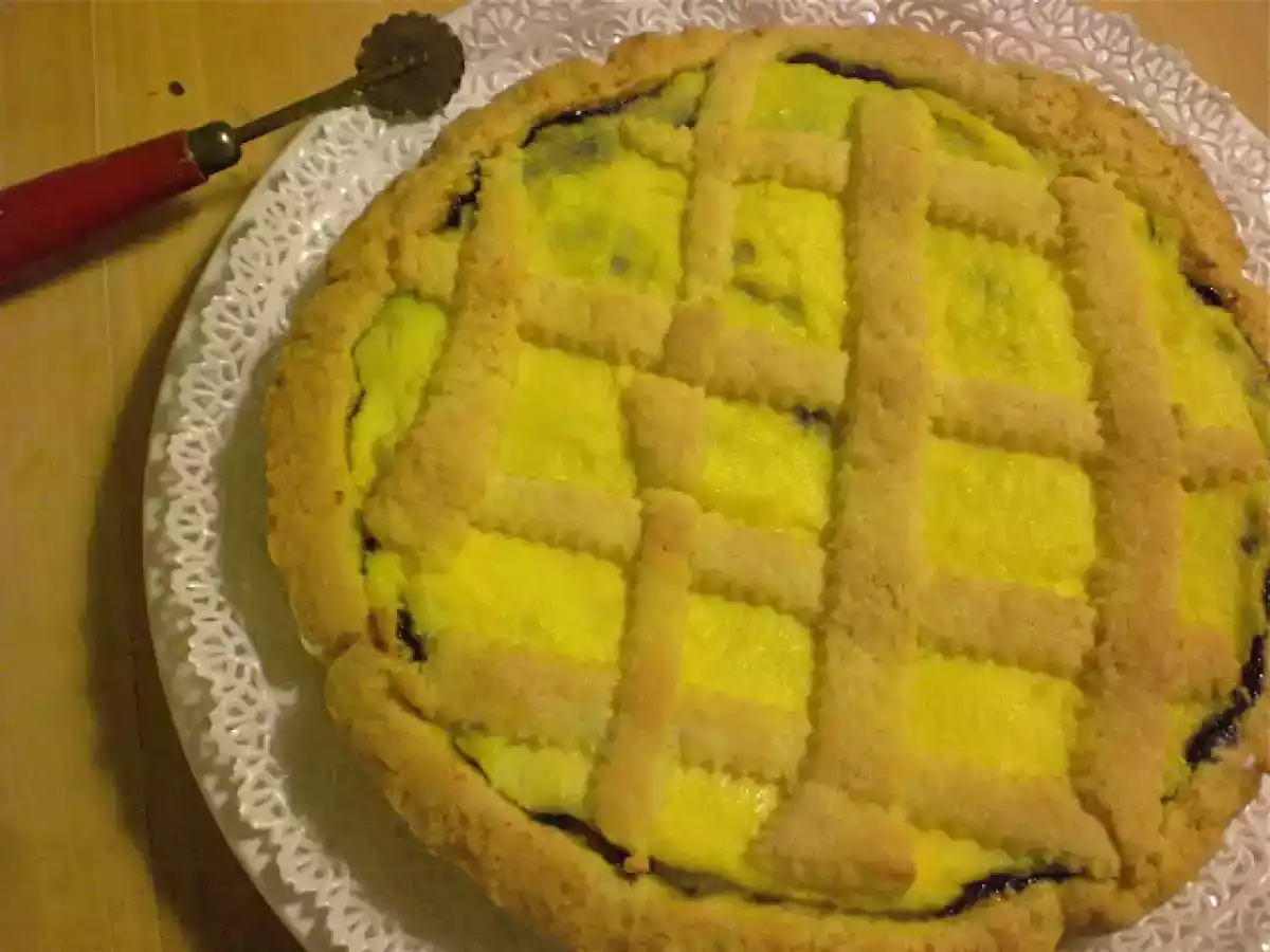 Crostata di ricotta e marmellata di mirtilli PrecedenteProssimo Dessertfacile1 h 5 m Invia questa ricetta ad un amico Stampa la ricetta Contatta l'autore della Ricetta Pubblica la foto di questa ricetta Ingredienti 4 Per la frolla 250 g di farina 50 g di farina di mandorle 2 uova 70 g di burro 80 g di zucchero mezza bustina di lievito Per la farcia Marmellata di mirtilli 250 g di ricotta 1 uovo 50 g di zucchero