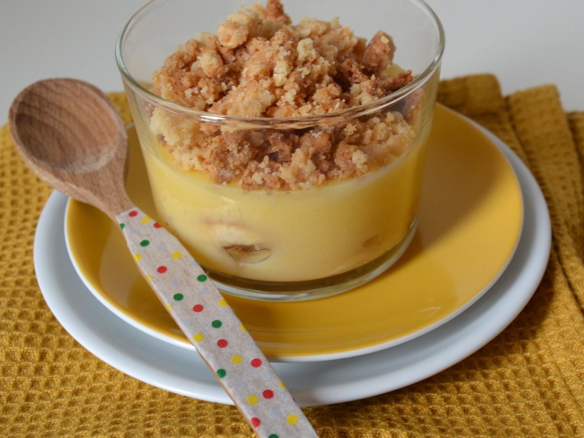 Il crumble è una di quelle ricette che preparo quando ho poco tempo per cucinare perchè è veloce, gustoso e si può adattare con qualunque frutta di stagione! Si tratta di un dolce al cucchiaio di origine irlandese (ne esistono anche versioni salate ma poco diffuse) che consiste in uno strato di pasta frolla sbriciolata e croccante che nasconde un cuore di frutta fresca. Nel mio caso aggiungo anche della crema pasticcera, per rendere il tutto più goloso!