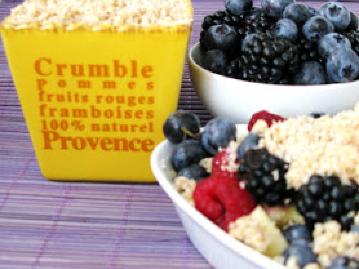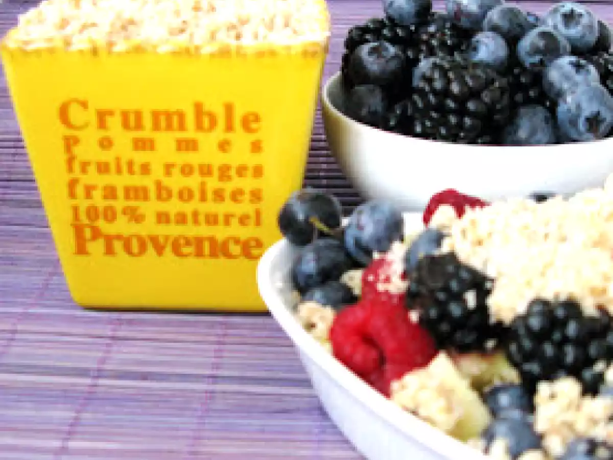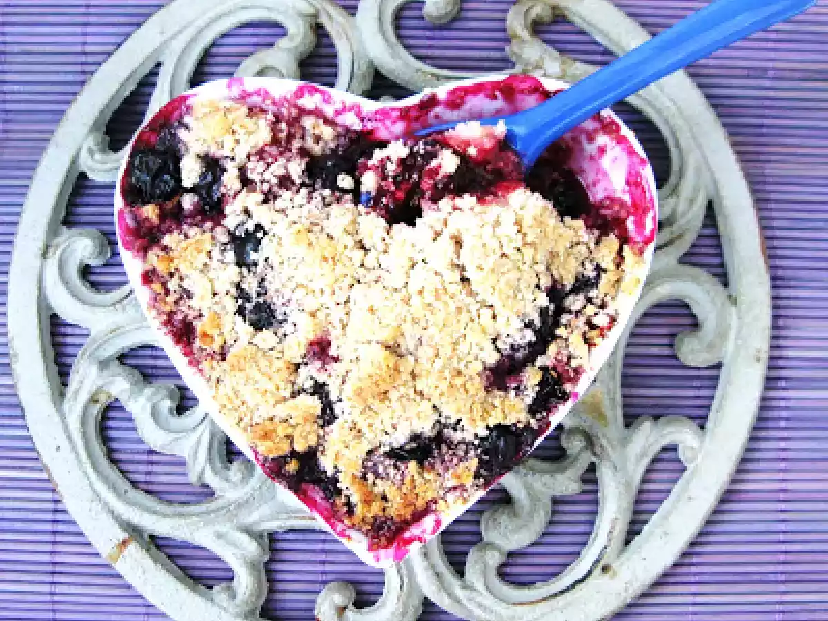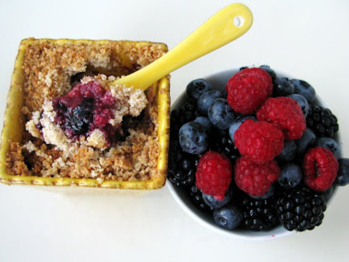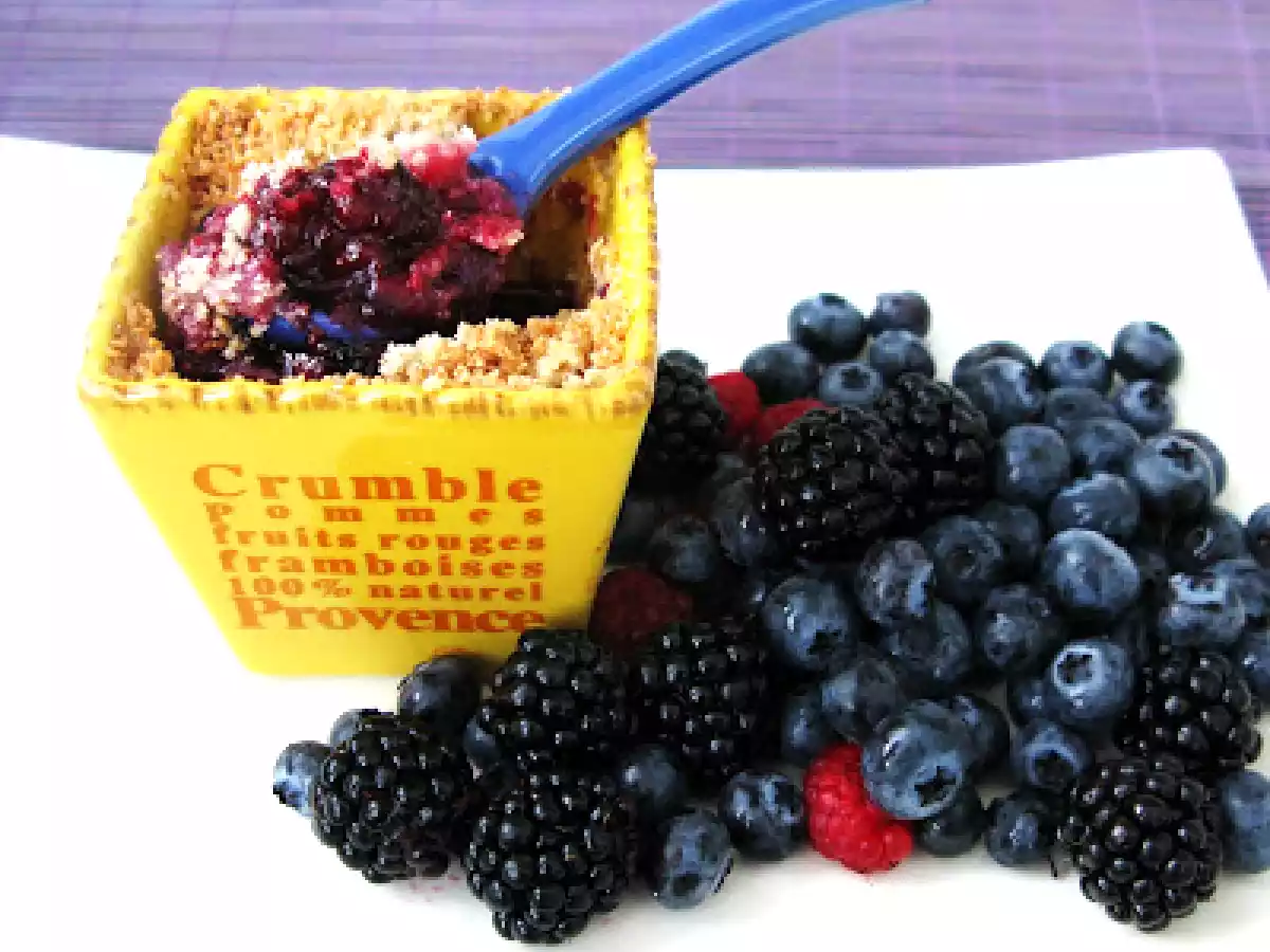 Crumble alle mele , frutti rossi e lamponi PrecedenteProssimo Dessertfacile40 min206 Kcal Invia questa ricetta ad un amico Stampa la ricetta Contatta l'autore della Ricetta Pubblica la foto di questa ricetta Ingredienti 4 1 mela 50 g lamponi 50 g more 50 g mirtilli 25 g zucchero di canna 25 g burro salato 25 g farina di mandorle 25 g farina integrale 1 /2 limone succo 2 cucchiai zucchero