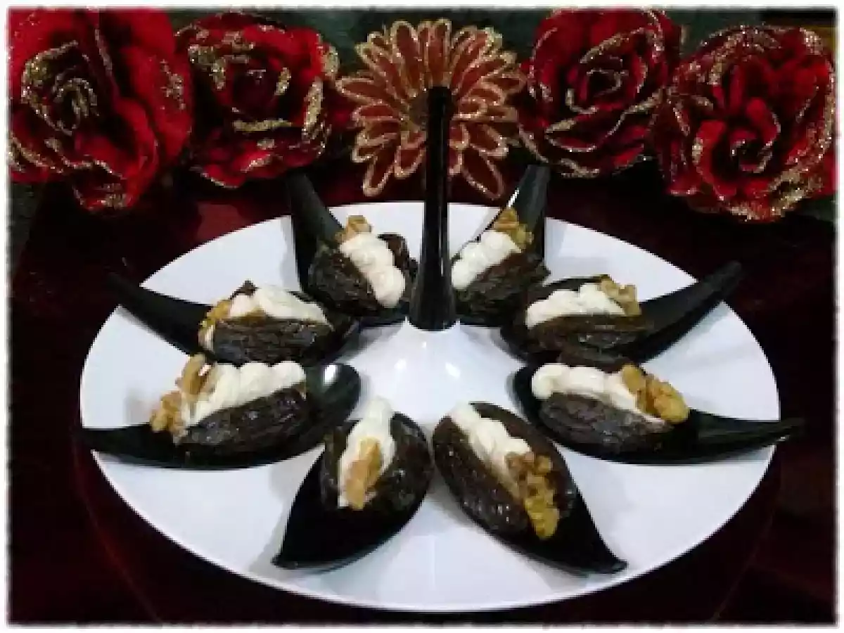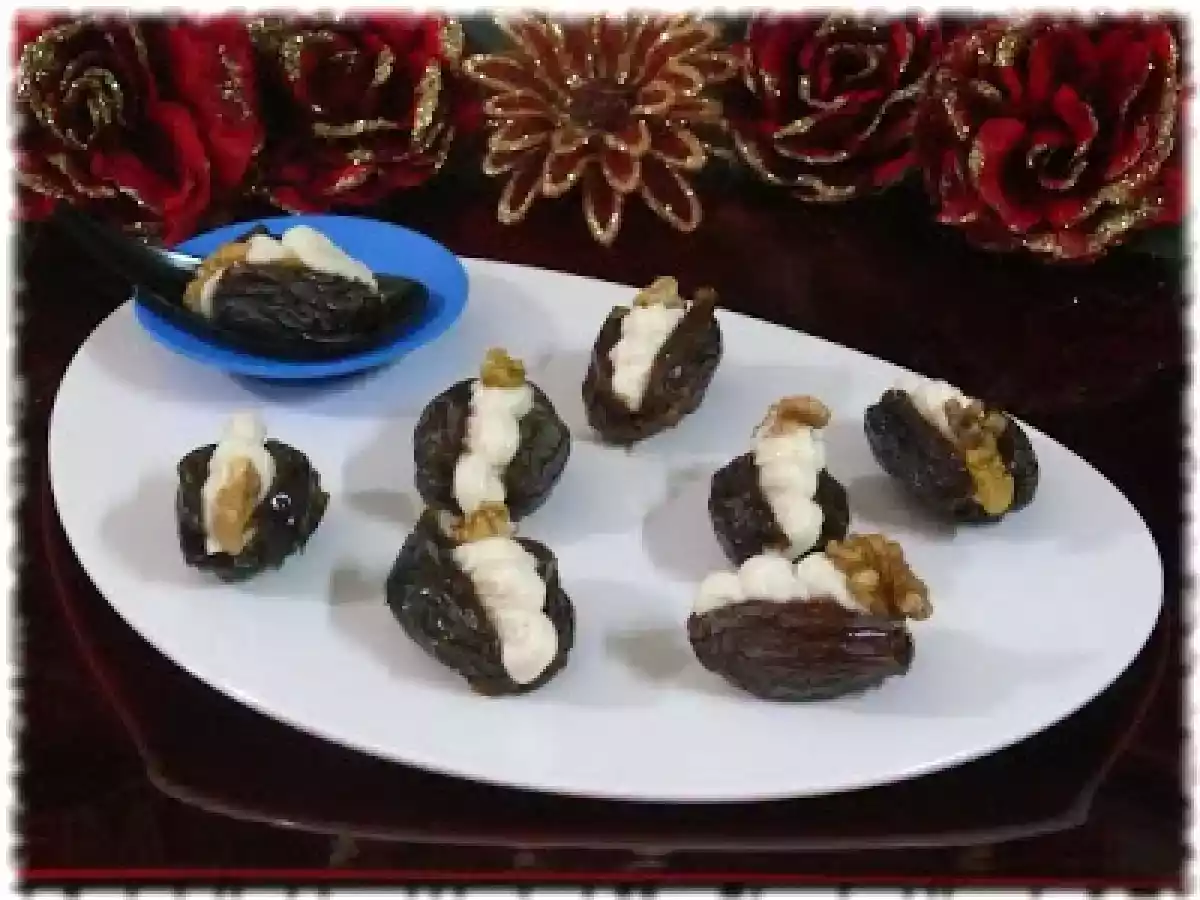 Datteri ripieni con mascarpone e noci PrecedenteProssimo Dessertfacile25 min366 Kcal Invia questa ricetta ad un amico Stampa la ricetta Contatta l'autore della Ricetta Pubblica la foto di questa ricetta Ingredienti 2 12 Datteri Noberasco 100 g di mascarpone 40 g di zucchero a velo NON vanigliato 1 cucchiaio di rum cannella 6 gherigli di noci Costo stimato: 2.19Euros€ (1.1€/Porzioni)