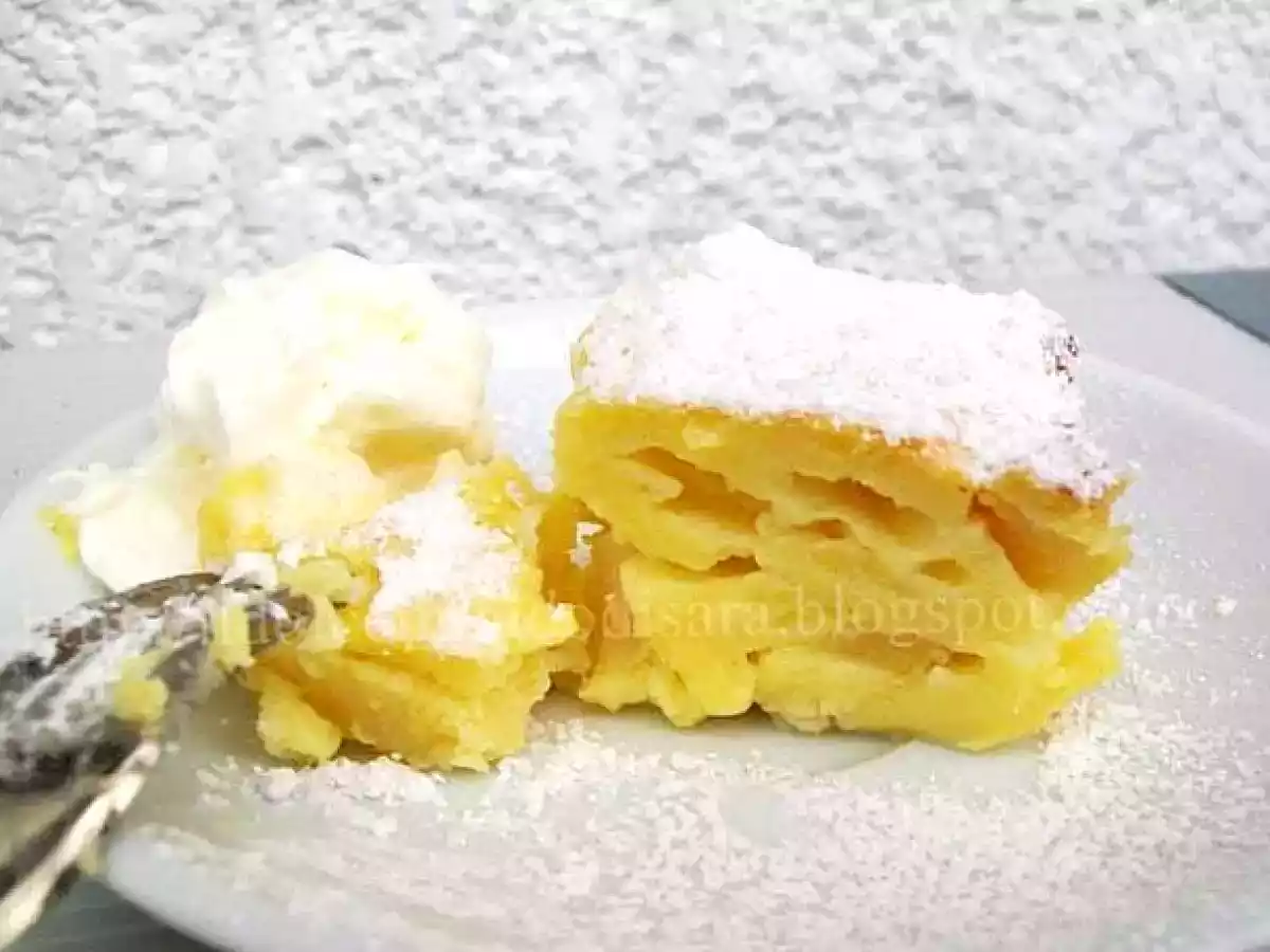 Dolce cremoso alla ricotta e mele PrecedenteProssimo Dessertfacile1 h 10 m Invia questa ricetta ad un amico Stampa la ricetta Contatta l'autore della Ricetta Pubblica la foto di questa ricetta Ingredienti 4 500 g di ricotta 7 cucchiai colmi di zucchero 2 uova 1 tuorlo 4 cucchiai colmi di farina 2 mele un cucchiaio di liquore (facoltativo) scorza grattugiata di un'arancia o di un limone