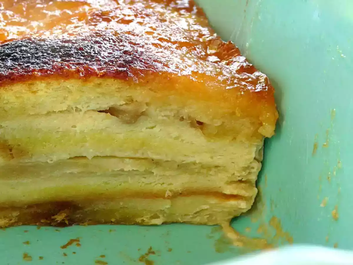 Dolce di pane alle mele PrecedenteProssimo Dessertfacile1 h 5 m Invia questa ricetta ad un amico Stampa la ricetta Contatta l'autore della Ricetta Pubblica la foto di questa ricetta Ingredienti 2 3 mele 2 cucchiai di zucchero di canna 25 g di burro 9 fette di pancarré o di una buona briosche al burro 200 g di panna fresca 4 cucchiai di calvados 4 cucchiai di confettura di arance amare