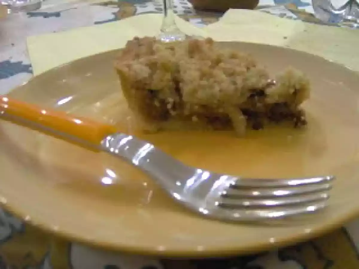 Dolce di pere con mandorle e amaretti vota adesso PrecedenteProssimo Dessertfacile1 h 20 m Invia questa ricetta ad un amico Stampa la ricetta Contatta l'autore della Ricetta Pubblica la foto di questa ricetta Ingredienti 5 Per la pasta frolla: 250 g di farina 125 g di burro ammorbidito 100 g di zucchero 1 uovo ½ bustina di vanillina un pizzico di sale fino Per il ripieno: 400 g di pere Abate 50 g di uvetta sultanina 3 cucchiai di liquore all'arancia 80 g di burro 150 g di amaretti 1 limone non trattato 1 cucchiaino e ½ di cannella in polvere Per la copertura: 50 g di zucchero a velo 30 g di mandorle pelate parte degli 80 g di burro