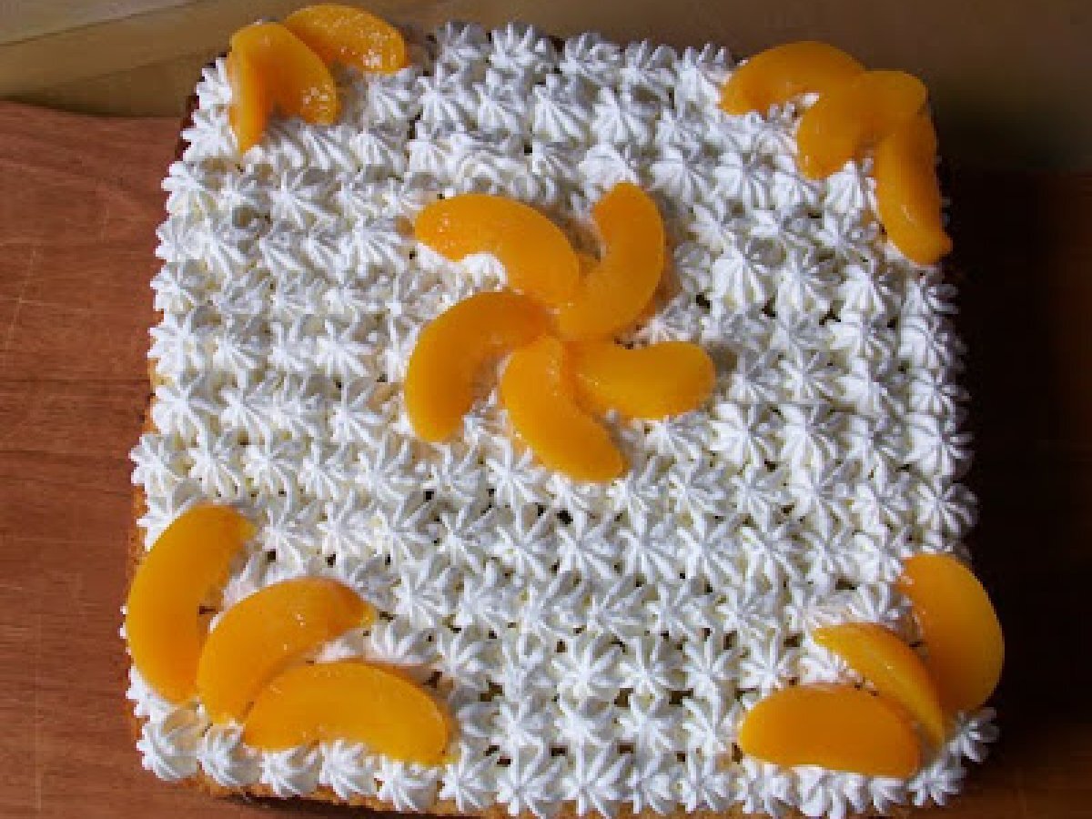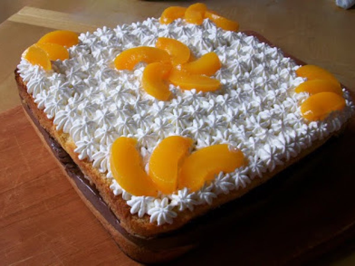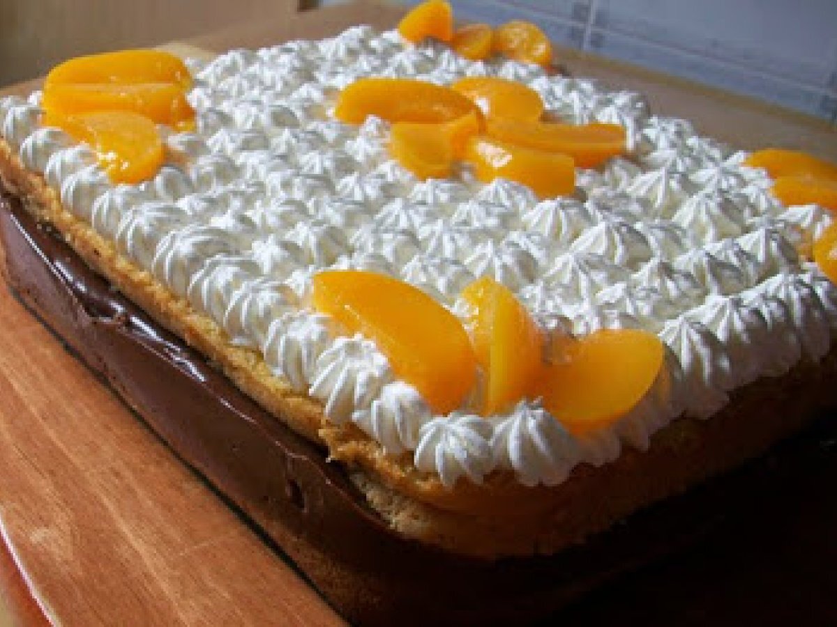 E la torta a voi... mattonella con budino alla nutella e pesche