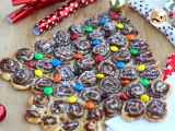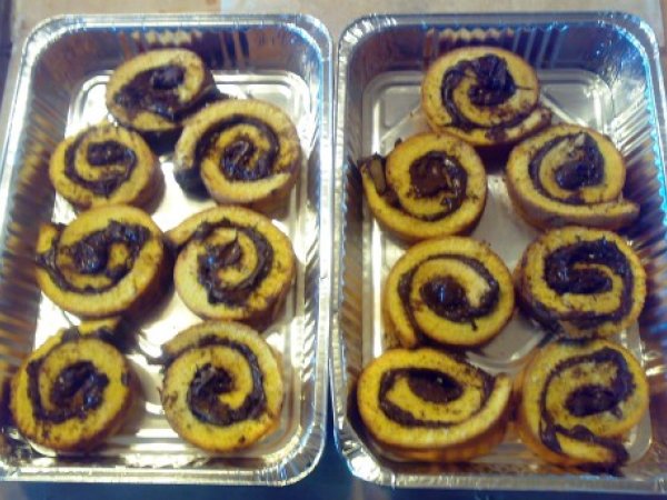 - Tagliare adesso i due estremi del rotolo in modo da far vedere la nutella. Tagliare poi tutto il rotolo a fettine e disponiamo le girelle in un piatto da portata.