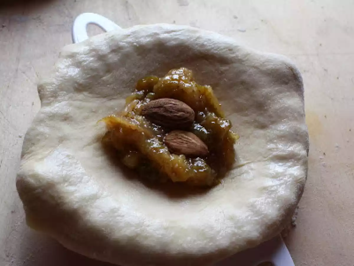 Fagottini ai fichi, rhum e mandorle PrecedenteProssimo Dessertfacile1 ora Invia questa ricetta ad un amico Stampa la ricetta Contatta l'autore della Ricetta Pubblica la foto di questa ricetta Ingredienti 3 Per la pasta: 100 gr di farina manitoba 150 gr di farina 00 30 gr di zucchero 2 dl di latte 25 gr di lievito di birra fresco 1 uovo intero scorza di limone grattuggiata 30 gr di burro morbido una presa di sale 1 spruzzata di rhum scuro Per il ripieno: 500 gr di fichi 36 mandorle intere 2 cucchiai di farina di mandorle 1 spruzzata di rhum scuro