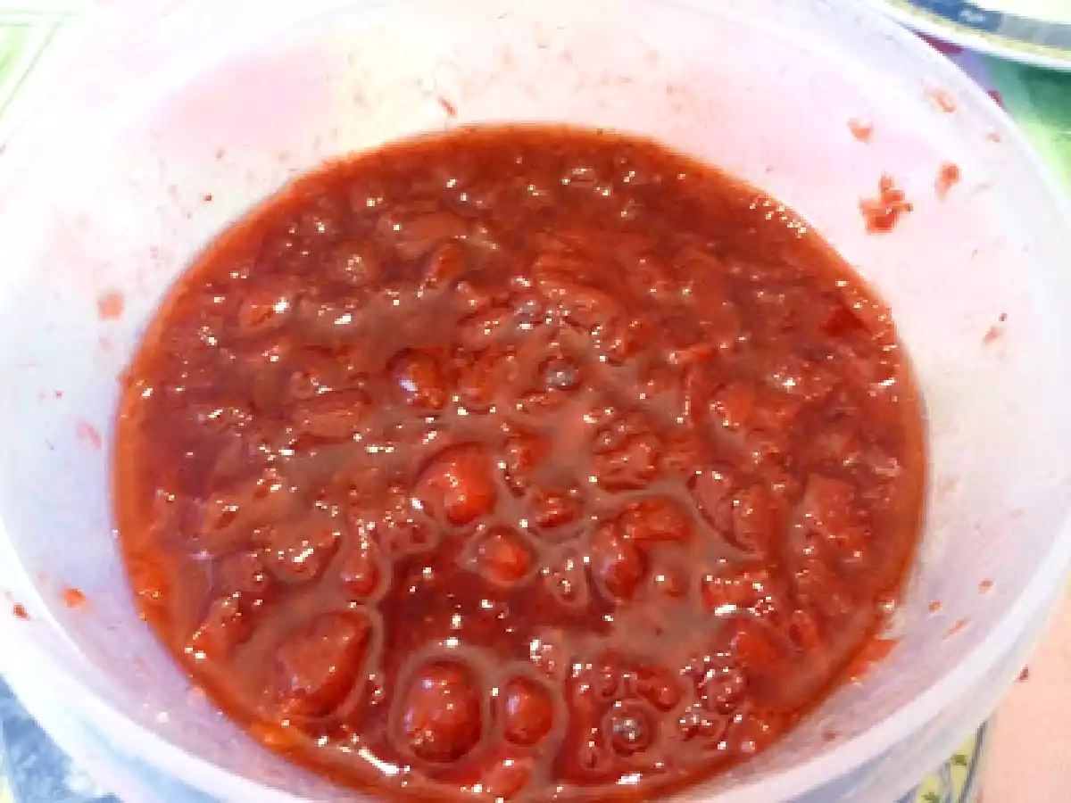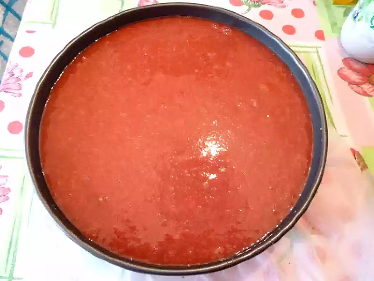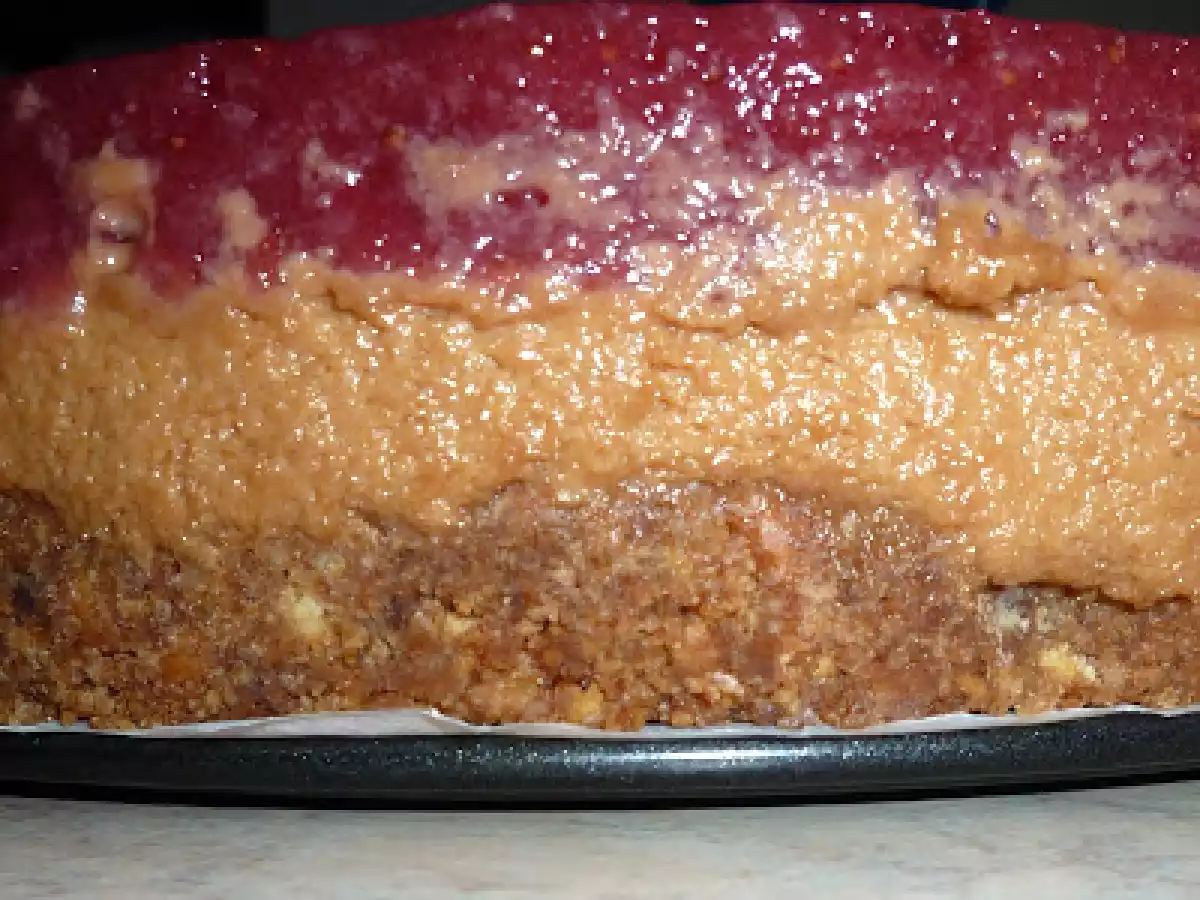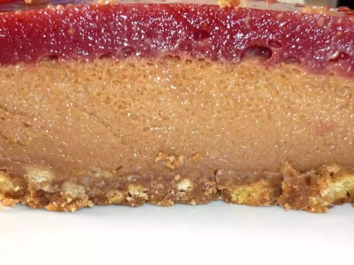 Finta cheese cake con mousse di cioccolato e gelatina di fragole