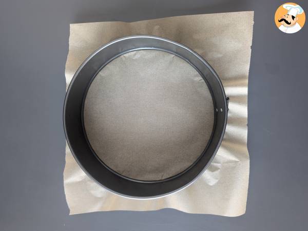 Mettere la carta da forno sul fondo dello stampo e ungere i bordi.
