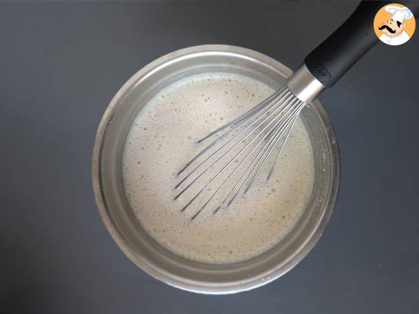 Versare la panna vegetale nel composto addensato e mescolare fino a quando non è ben amalgamata.