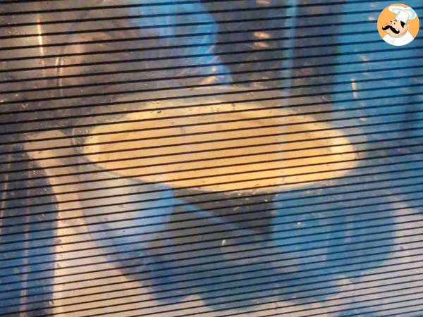 Preriscaldare il forno a 180°C. Estrarre lo stampo dal freezer e aggiungere la crema. Livellatela fino a rendere la superficie uniforme
