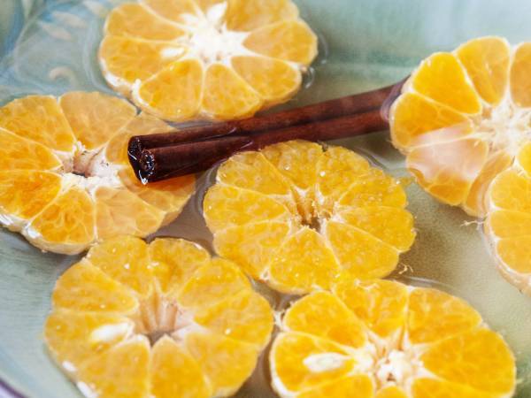Gelato alla vaniglia con mandarini in sciroppo di cannella