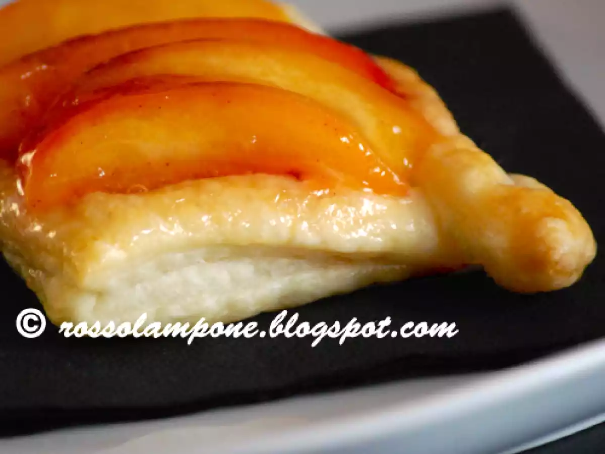 Girandole di sfoglia alle pesche caramellate e crema al cointreau