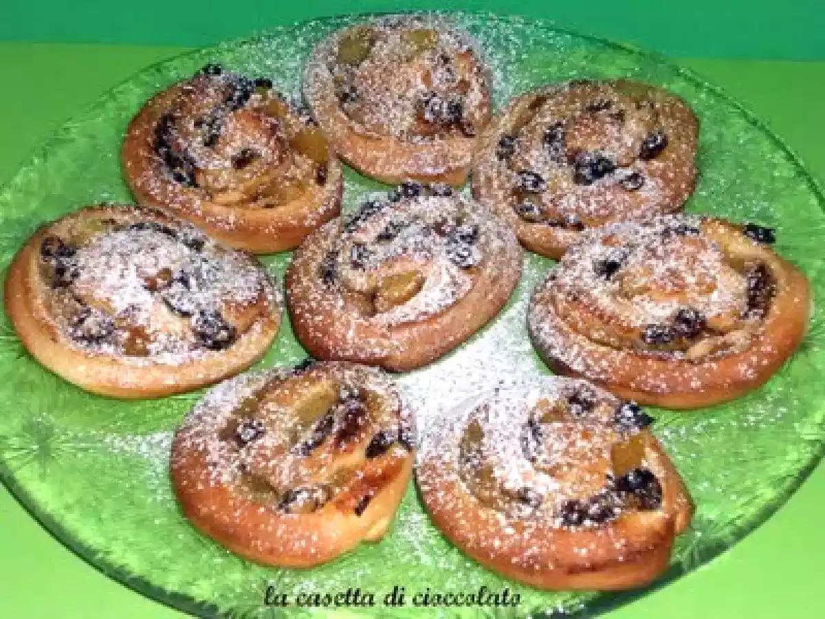 Girelle mele e uvetta Dessertmedia1 h 20 m Invia questa ricetta ad un amico Stampa la ricetta Contatta l'autore della Ricetta Pubblica la foto di questa ricetta Ingredienti 8 per la pasta briosches gr.500 farina manitoba gr.25 lievito di birra gr.100 zucchero semolato 2 uova ml.50 di latte gr.75 burro buccia grattuggiata 1 arancia vanillina 1/2 cucchiaio miele sale per il ripieno 3 mele gr.100 uvetta gr.60 farina di mandorle 3 cucchiai di zucchero marmellata cannella