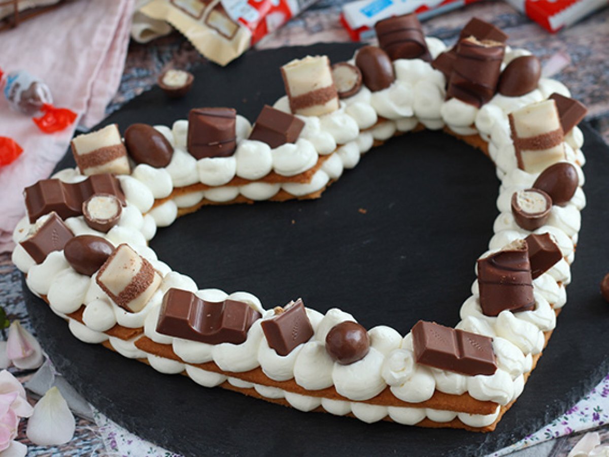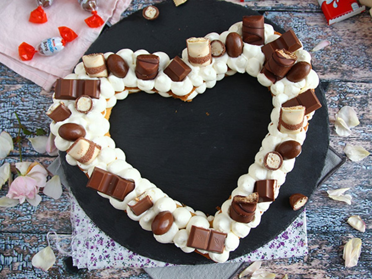 Al posto dei Kinder potete usare anche altri tipi di cioccolato oppure della frutta fresca: decorate il vostro cuore come più vi piace.
