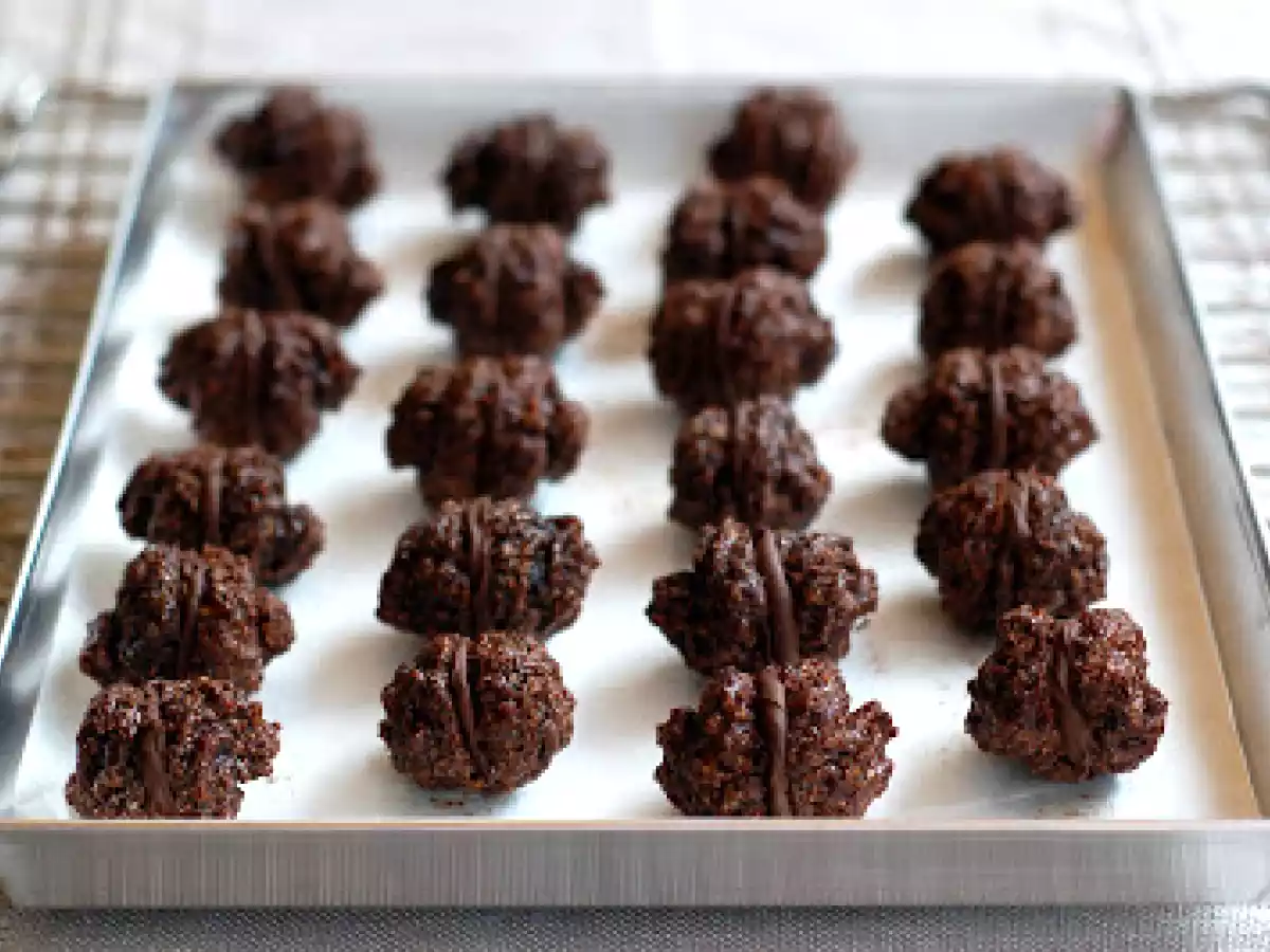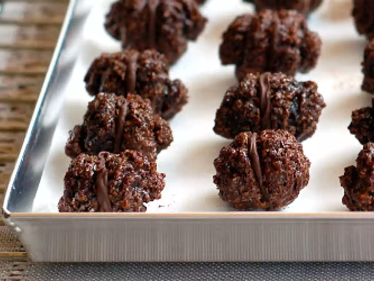 I baci di alassio PrecedenteProssimo Dessertfacile1 ora818 Kcal Invia questa ricetta ad un amico Stampa la ricetta Contatta l'autore della Ricetta Pubblica la foto di questa ricetta Ingredienti 4 250 g nocciole pelate e tostate 250 g di zucchero semolato 40 g cacao amaro 25 g miele di acacia 2 albumi montati a neve + qb di albume non montato per ammorbidire il composto 50 g di cioccolato fondente un cucchiaino di burro Costo stimato: 7.62Euros€ (1.91€/Porzioni)
