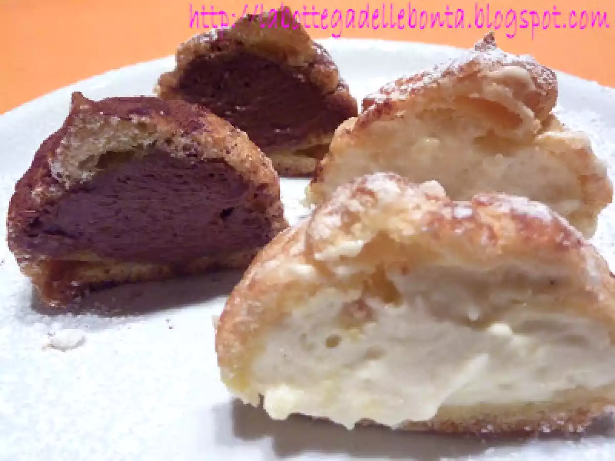 I miei primi bigne' alla chantilly e mousse di cioccolato PrecedenteProssimo Dessertfacile2 h 25 m1854 Kcal Invia questa ricetta ad un amico Stampa la ricetta Contatta l'autore della Ricetta Pubblica la foto di questa ricetta Ingredienti 4 Pasta choux: 250 g di burro morbido 250 g di acqua 250 g di farina 7 uova 5 g si sale Per la chantilly: 500 ml di crema pasticcera cliccate qui per la ricetta 500 ml di panna montata Per la mousse di cioccolato: 200 g di cioccolato fondente 60 g di acqua 2 tuorli 2 albumi 60 g di zucchero 200 ml di panna liquida fresca