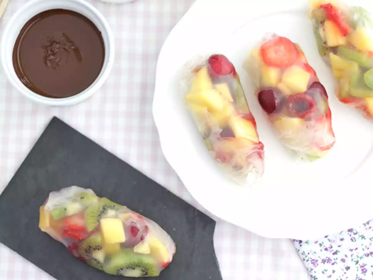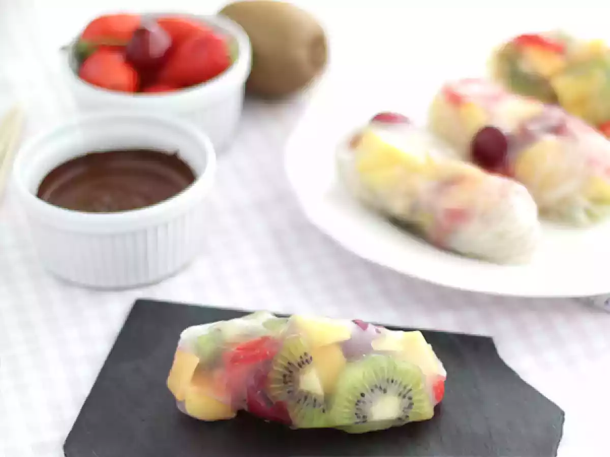 Una freschissima ricetta da preparare con la sfoglia di riso, una variante dolce degli involtini primavera. Vi consiglio di assaggiarla!