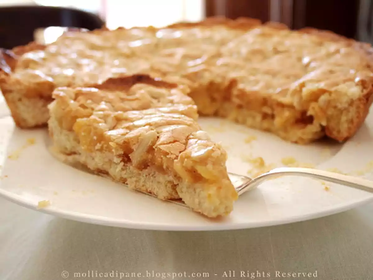 La crostata di mele e mandorle è di adriano continisio! Dessertfacile1 ora Invia questa ricetta ad un amico Stampa la ricetta Contatta l'autore della Ricetta Pubblica la foto di questa ricetta Ingredienti 6 400 g pasta frolla 4 mele grandi 80 g di zucchero 4 cucchiai di amaretto di saronno succo di mezzo limon poca cannella in polvere massa di mandorle 120 g uova intere 60 g zucchero 50 g farina di mandorle 15 g farina di mais fioretto 15 g di fecola un pizzico di sale estratto di mandorle una manciata di mandorle a lamelle sciroppo di zucchero marmellata di albicocche Costo stimato: 8.31Euros€ (1.38€/Porzioni)