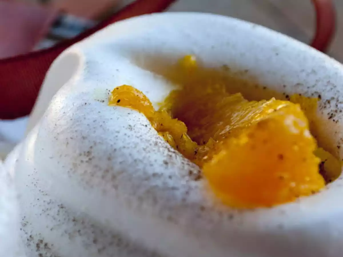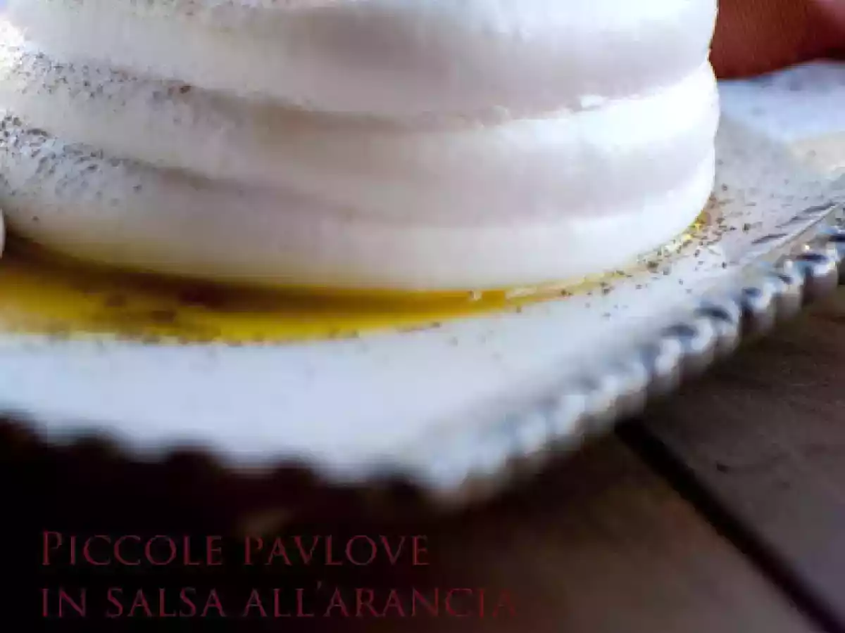 La pavlova alla salsa d'arancia e cannella vota adesso PrecedenteProssimo Dessertfacile40 min Invia questa ricetta ad un amico Stampa la ricetta Contatta l'autore della Ricetta Pubblica la foto di questa ricetta Ingredienti 4 107 g di albumi 107 g di zucchero semolato 107 g di zucchero a velo Per la salsa all'arancia : 3 arance naveline pelate a vivo 2 cucchiai di zucchero 1 noce di burro cannella q.b. zibibbo per sfumare
