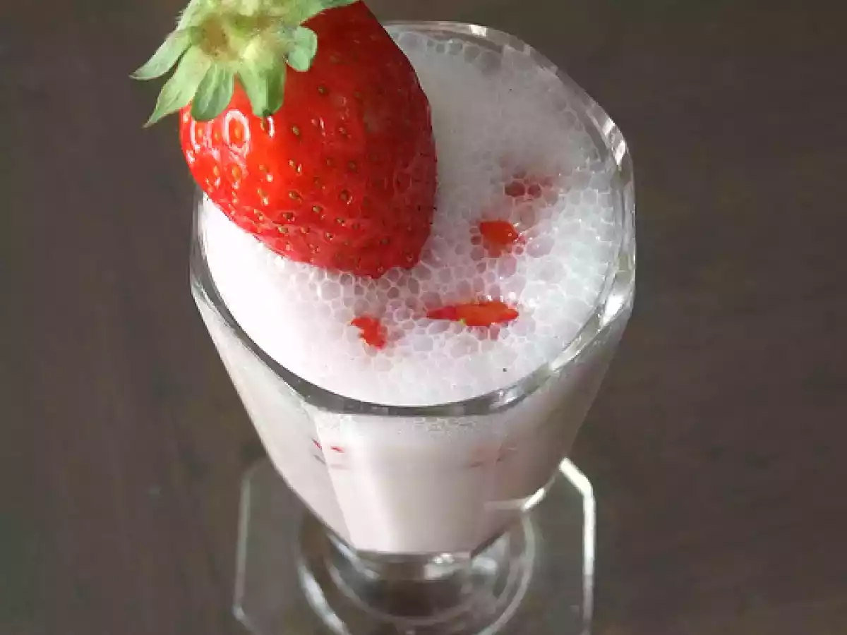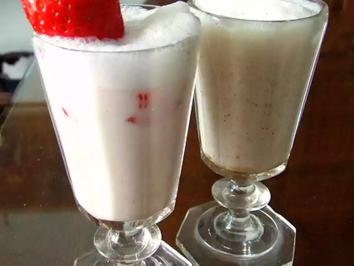 Lassì yogurt-miele-cannella e fragola- vaniglia vota adesso PrecedenteProssimo Dessertfacile25 min Invia questa ricetta ad un amico Stampa la ricetta Contatta l'autore della Ricetta Pubblica la foto di questa ricetta Ingredienti 6 500 gr di yogurt 1 e 1/2 tazze d'acqua freddissima 3 cucchiai di miele 1/2 cucchiaino di cannella qualche cucchiaino di cacao amaro qualche cubetto di ghiaccio(facoltativo) oppure 1/2 cucchiaino di essenza di vaniglia 6/7 fragole più qualcuna intera per la decorazione