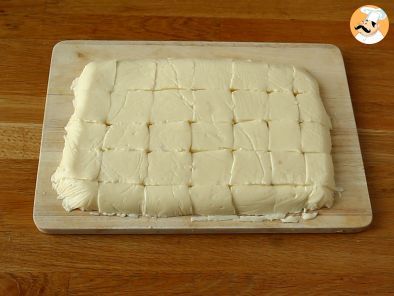 Sformate la crema (che dovrebbe essersi solidificata) e tagliatela a cubi. Impanate ogni cubo nella farina, poi intingeteli nelle uova sbattute.