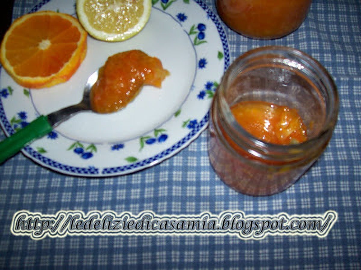 Marmellata di arance e limoni Dessertfacile30 min550 Kcal Invia questa ricetta ad un amico Stampa la ricetta Contatta l'autore della Ricetta Pubblica la foto di questa ricetta Ingredienti 3 4 arance grandi e succose 300 gr di zucchero 1 limone 1 bicchierino di acqua 1 bicchierino di rum bianco Costo stimato: 3.09Euros€ (1.03€/Porzioni)