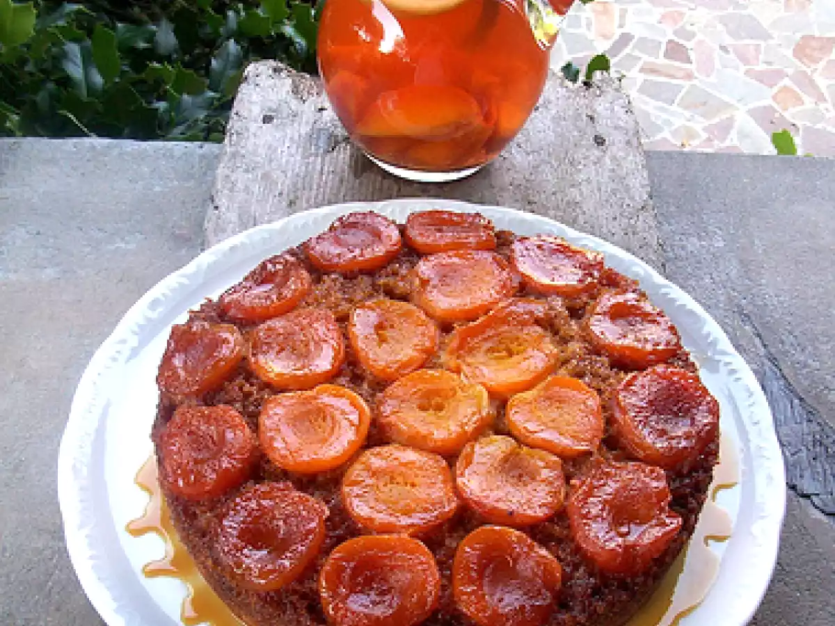 Merenda estiva: torta rovesciata di albicocche e tè freddo alla frutta e vaniglia PrecedenteProssimo Dessertfacile50 min1145 Kcal Invia questa ricetta ad un amico Stampa la ricetta Contatta l'autore della Ricetta Pubblica la foto di questa ricetta Ingredienti 4 Per il caramello: 125 ml di acqua 200 g di zucchero semolato 70 g di burro Per l'impasto: 100 g di farina 00 50 g di farina integrale 50 g di farina di mandorle 1 bustina di lievito 1 pizzico di cannella 4 uova 220 g di zucchero di canna 125 g di burro fuso 10 albicocche divise a metà e snocciolate Costo stimato: 6.33Euros€ (1.58€/Porzioni)