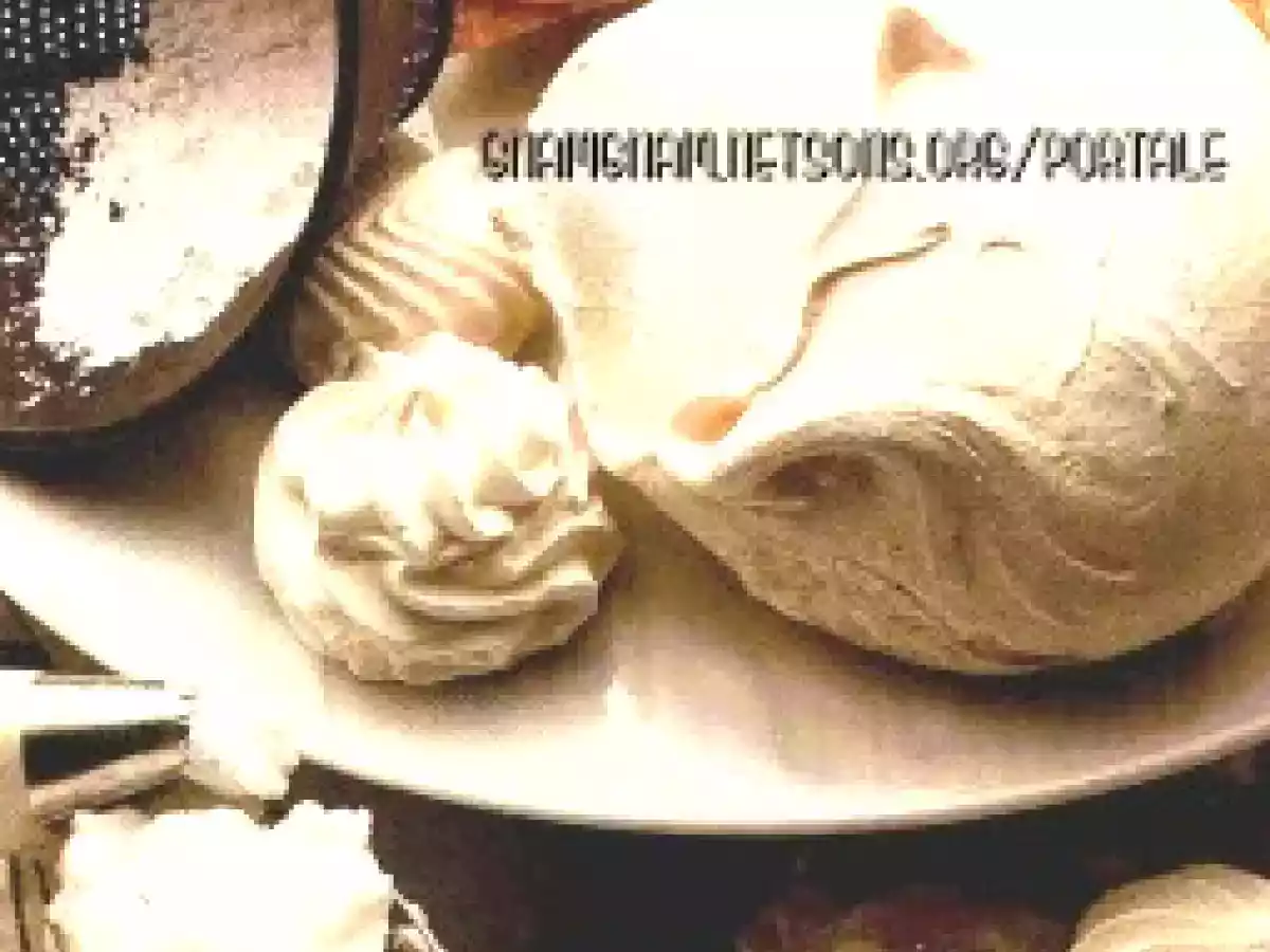 - MERINGA A CALDO : Le dosi e la cottura sono le stesse della ricetta precedente; gli albumi d’uovo e lo zucchero si mettono insieme in un pentolino e si montano a caldo in un bagnomaria tiepido finche’ sono ben gonfie.