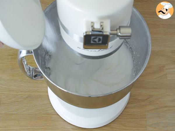 Montate gli albumi a neve, poi aggiungete lo zucchero poco alla volta. Continuate a lavorare il composto fino a quando non risulterà lucido e spumoso.