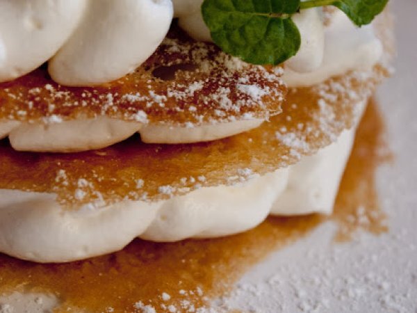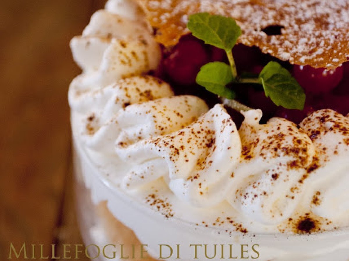 Millefoglie di tuiles al caffè con panna vota adesso PrecedenteProssimo Dessertfacile55 min Invia questa ricetta ad un amico Stampa la ricetta Contatta l'autore della Ricetta Pubblica la foto di questa ricetta Ingredienti 2 Per le tuiles al caffè : 125 g di zucchero semolato 50 g di burro 63 g di farina 1 albume 15 ml di caffè espresso 1 cucchiaio di marsala Panna montata e ribes per finire