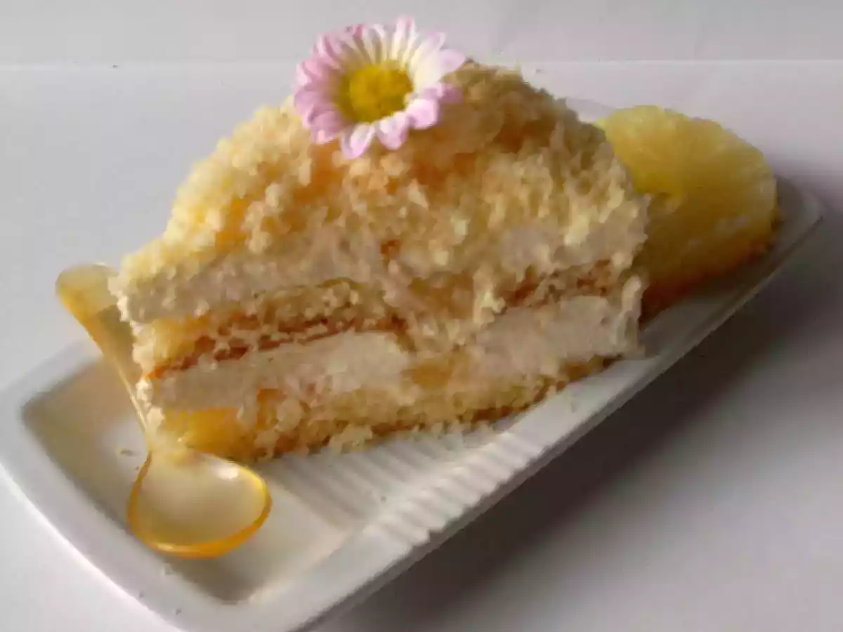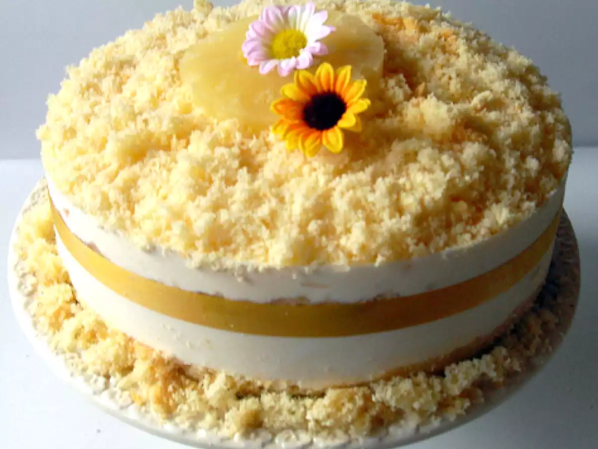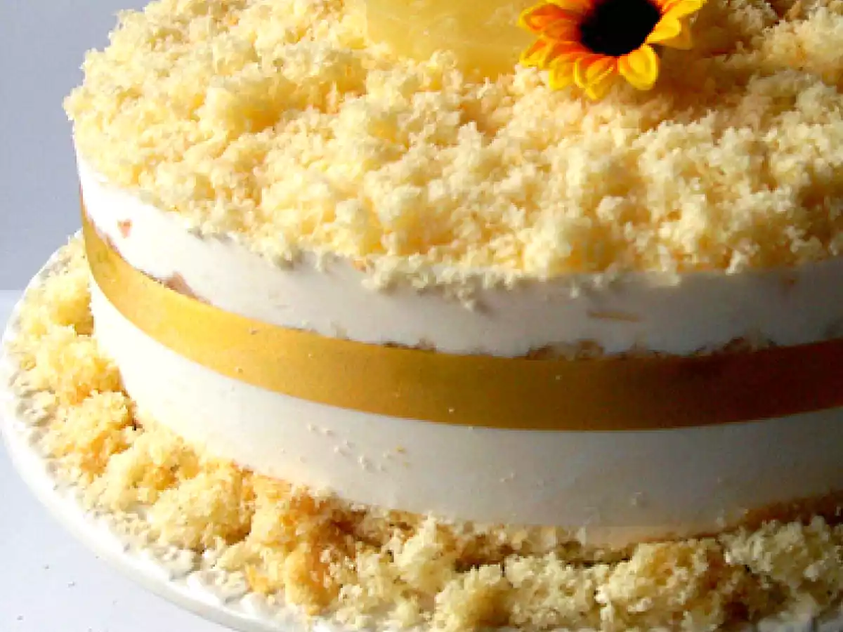 Mimosa cheesecake PrecedenteProssimo Dessertfacile1 h 5 m1296 Kcal Invia questa ricetta ad un amico Stampa la ricetta Contatta l'autore della Ricetta Pubblica la foto di questa ricetta Il dolce perfetto per la festa della donna Ingredienti 7 1) Pan di spagna : 5 uova 120 di amido di mais 40 g di farina 1 bustina di lievito 120 di zucchero Buccia di limone 2) Per la crema chantilly : 250 g di crema pasticcera 200 ml di panna montata 3) Per la farcia : Ananas a fette in barattolo