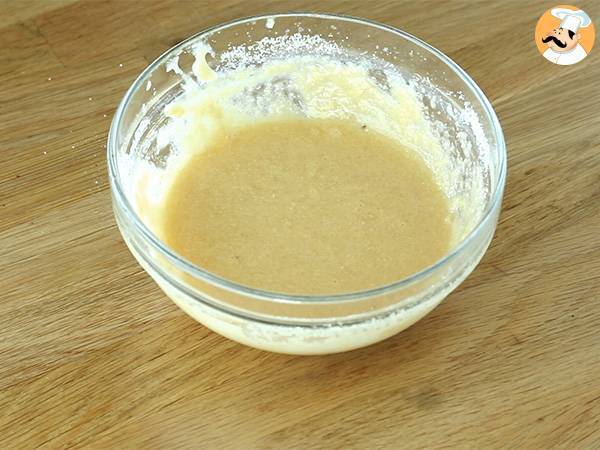 Battete le uova con lo zucchero. Aggiungete la farina di mandorle e la maizena e mescolate per bene cercando di evitare la formazione di grumi. Infine incorporate il latte